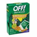 OFF! Deep Woods Towelettes. Conveniently carry in a vehicle, briefcase, toolbox or supply kit for insect repelling on the go. 25% DEET formula provides long-lasting protection from mosquitoes, ticks, biting flies, gnats and chiggers. Pre-moistened towelettes won't dry out. Individually wrapped towelettes. 12 Packs per Case. 12 Towelettes per Pack.